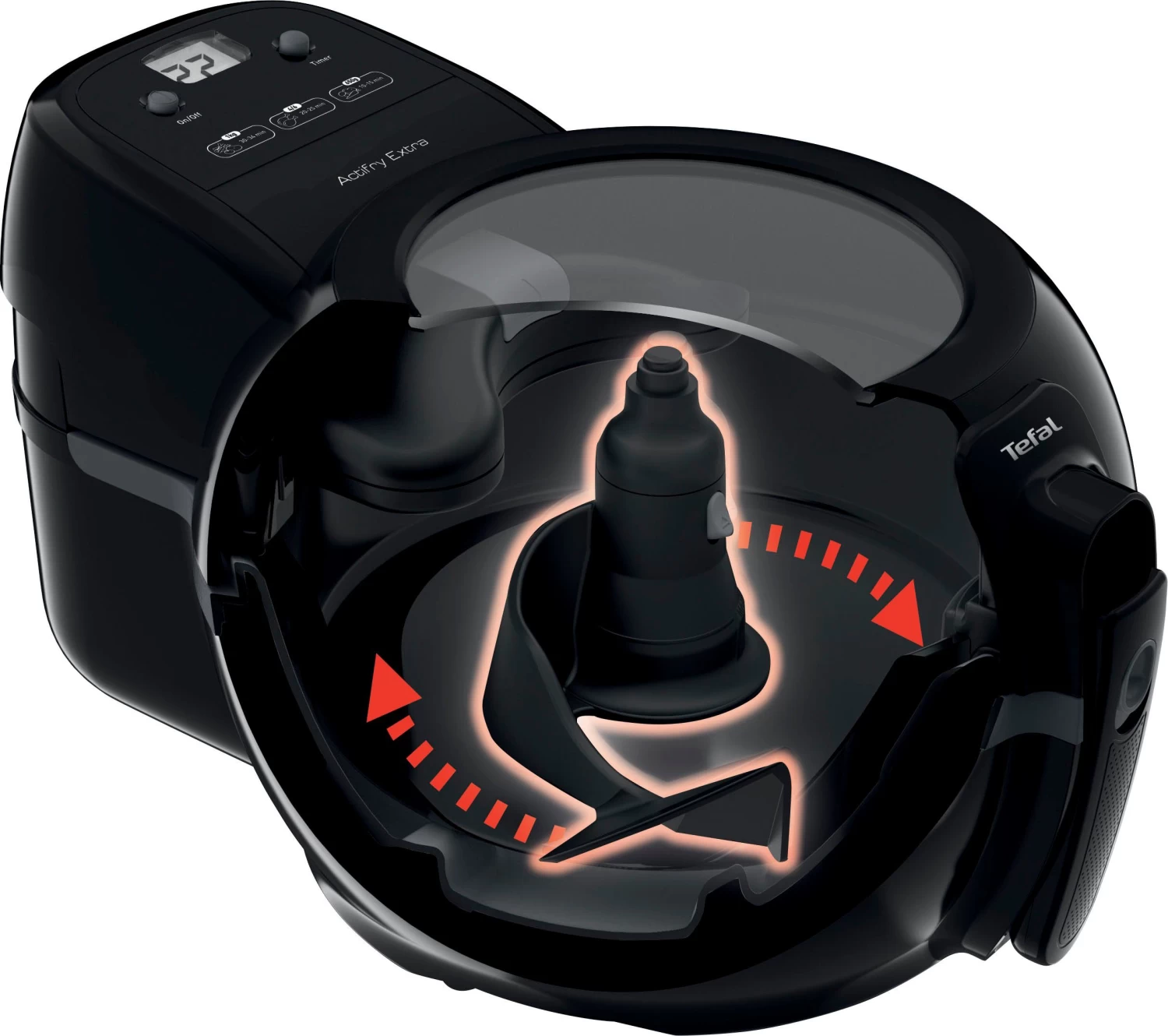 | Overige voordelen | De nieuwe ActiFry extra levert extreem knapperige resultaten en dat in topsnelheid dankzij nieuwe high speed air Flow., Dual Motion Technology met roterende roerarm: automatisch roeren en circuleren zonder aanbranden, gelijkmatige verdelen van de weinige olie. Zonder schudden, zonder erbij blijven., Veilige en eenvoudige bediening: frituren zonder heet oliebad; autostop bij het openen van de deksel; praktische timerfunctie voor maximaal 60 minuten met signaaltoon; geen spatten van vet of saus bij het garen., Gaarschaal met krasvaste antiaanbaklaag en uitsluitend natuurlijke materialen: keramiek op siliciumbasis (RESISTANT S-technologie). extra overtuigt de friteuse met een hoogwaardig design met glazen deksel. |