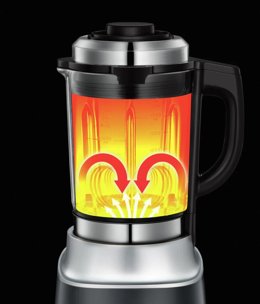 Haal het beste uit jezelf met Ultrablend Cook, de ultrasnelle blender die ingrediënten ook kan verwarmen! Geniet van diverse warme en koude gerechten dankzij de nauwkeurige temperatuurregeling voor de allerbeste smaak en Tripl’Ax® Pro-technologie voor supersmeuïge resultaten. Met de acht automatische programma’s en krachtige motor kun je snel en eenvoudig allerlei recepten maken. Haal het beste uit jezelf met Ultrablend Cook, de ultrasnelle blender die ingrediënten ook kan verwarmen. Geniet van diverse smakelijke warme en koude gerechten dankzij de nauwkeurige temperatuurregeling die de allerbeste smaak vrijlaat. De Tripl’Ax® Pro-technologie met 6 roestvrij stalen messen, aangedreven door een krachtige 1300 Watt motor, zorgen voor een uiterst smeuïg resultaat. Het fijnmalen met hoge snelheid geeft de aroma’s vrij die in elk ingrediënt zitten. Ook het filteren van plantaardige melk is niet meer nodig. Met de acht automatische programma’s en Auto Clean (Soep, Coulis, Warme saus, Compôte, Meergranen Amandel- of Sojamelk, Ice Crush, Groene smoothie en Milkshake) kun je heel eenvoudig allerlei recepten maken. Om het compleet te maken, kun je met de hittebestendige glazen kan veilig omschakelen tussen warme en koude gerechten. Het gebruiksvriendelijk digitaal display biedt de nodige comfort.