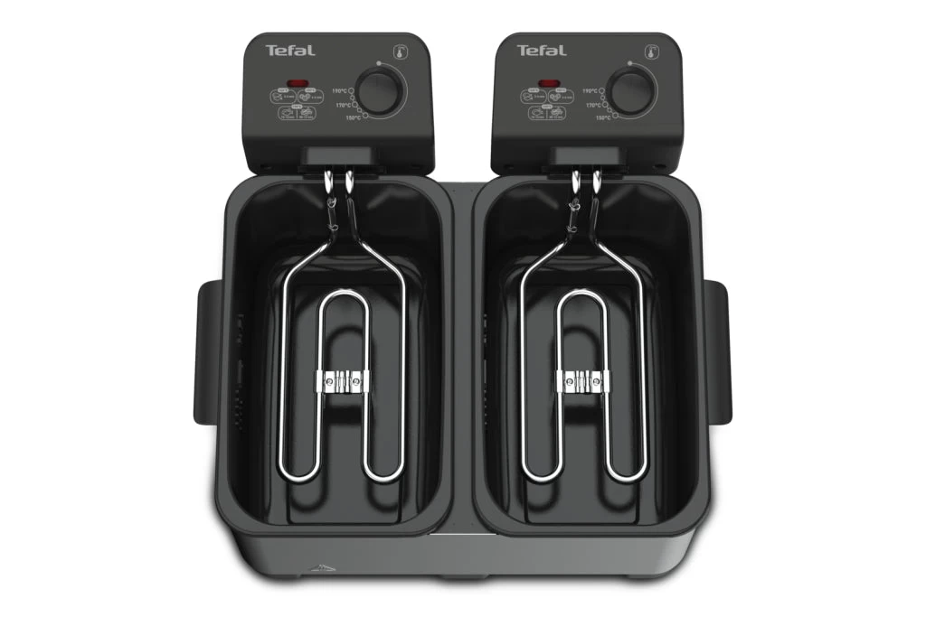 Zin in een lekkere maaltijd met friet en snacks en geen zin om te wachten? Met de Tefal FR3610 Double PRO friteuse ben je zo klaar! Bak in een van de twee frituurpannen de friet en tegelijkertijd in de andere de snacks. Zo blijven smaken en geuren gescheiden en heb je toch in een keer een maaltijd compleet. Geniet van een complete maaltijd zonder dat geuren en smaken mengen. De Double Pro friteuse van Tefal beschikt over twee grote frituurpannen waar 1 kg aan ingrediënten per pan in kunnen. Zo kun je tegelijkertijd friet en snacks frituren voor het hele gezin. De frituurpannen zijn geheel onafhankelijk te bedienen en kunnen beiden ingesteld worden op een temperatuur van 190°C. De koudezonetechnologie zorgt ervoor dat kruimels niet verbranden waardoor er minder nare geurtjes ontstaan en de olie langer vers blijft. Met de roestvrijstalen deksel met kijkvenster kun je het bakproces goed in de gaten houden. Door de vaatwasmachinebestendige onderdelen, kun je de Double Fry friteuse gemakkelijk schoon maken.