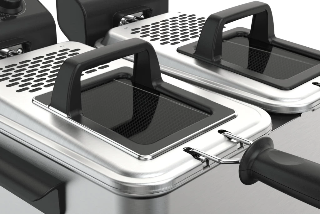 - Frituur een complete maaltijd in 1 keer met de 2 grote onafhankelijke frituurpannen (2 x 1 kg ingrediënten / 2 x 3,5 L olie)