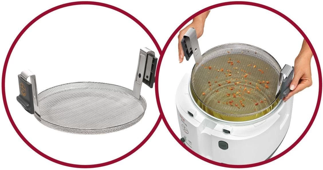 <b>Speciale eigenschappen:</b><br><ul><li>De extra fijne opvangzeef filtert frituurresten uit de olie. Tijdens het frituren bevindt de opvangzeef zich onderin. Deze kan na het afkoelen van de olie veilig en comfortabel aan de handgreep opgetild worden. Schone olie zonder verbrande frituurresten: minder geur, betere smaak en gezonder frituren.</li></ul><b>Nog meer voordelen:</b><br><ul><li>Veiligheid en comfort dankzij exclusief, gepatenteerd »Clean-Oil-System«</li><li>Thermowand met 2 grepen voor een eenvoudig transport.</li><li>Omdat deksel, frituurmand en filterzeef geschikt zijn voor de vaatwasser, is eenvoudig reinigen gegarandeerd.</li><li>Regelbare thermostaat met temperatuur-controlelampje.</li></ul><b>Eigenschappen:</b><br><ul><li>Inhoud frituurwaren (kg): 1,2</li><li>Vet-/oliecapaciteit (liter): 2,1</li><li>Filter: metalen blijvend filter in de deksel geïntegreerd, filterzeef</li><li>Vermogen (W): 1900</li></ul><b>Uitvoering:</b><br><ul><li>Temperatuurcontrole: ja</li><li>Traploze temperatuurregelaar: ja</li><li>Aan-uitschakelaar met controlelampje: ja</li><li>Vetreservoir / deksel/ mandje geschikt voor de vaatwasser: ja</li><li>Veiligheidsknop voor automatische opening: ja</li><li>Schenksysteem: -</li><li>Kijkvenster: ja</li><li>Digitale tijdmeter / timer: nee</li><li>Materiaal behuizing: kunststof</li><li>Afm. apparaat lxbxh (cm): 28,4 x 34,4 x 38,1</li><li>Accessoires: -</li><li>Gebruiksaanwijzing: met afbeeldingen</li><li></li></ul>