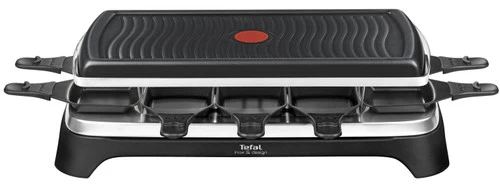 Met de Tefal Gourmet 10 Inox & Design RE4588 gourmet je tot 10 personen. Dankzij het hoge vermogen van 1.350 watt is het gourmetstel snel opgewarmd. De Tefal Thermo Signal-stip kleurt effen rood wanneer hij op temperatuur is. Handig, want zo weet je precies wanneer je de ingrediënten op de grillplaat legt. Verder gebruik je het gourmetstel tegelijkertijd ook als raclette. Zo smelt je in het pannetje een plakje kaas voor bijvoorbeeld je cheeseburger. Na gebruik was je de plaat met de hand af. Het netsnoer koppel je los van de grill, zodat je `m gemakkelijk opbergt in je keukenkastje.