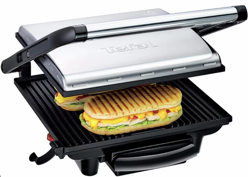 Gebruik de Tefal Grill Panini Grill GC241D12 om thuis panini’s te grillen. De contactgrill beschikt over geribbelde platen met antiaanbaklaag, hierdoor koeken je panini’s niet aan. Je panini’s worden mooi plat door het deksel met vergrendeling. Overtollig vet en vocht komt terecht in het opvangbakje, zodat je aanrecht niet vies wordt en de contactgrill ook een stuk schoner blijft. Als je hebt genoten van je zelfgemaakte panini’s, reinig je de bakplaten eenvoudig en doe je het uitneembare opvangbakje in de vaatwasmachine. Je bergt de contactgrill zowel horizontaal als verticaal op, hierdoor neemt die weinig ruimte in beslag.