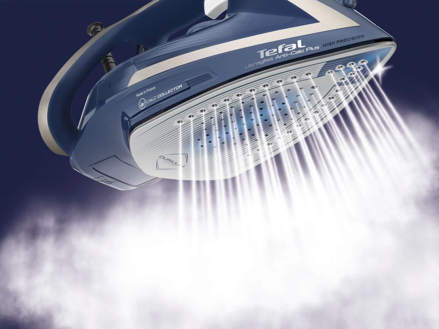 | Overige voordelen | Het afneembare kalk-collector-systeem is moeiteloos te reinigen en garandeert een langere levensduur van het product, een moeiteloos onderhoud van het toestel en aanhoudend hoge prestaties. De extra gladde Durilium Airglide zoolplaat is krasbestendig, duurzaam en heeft 100% actieve stoomopeningen voor een maximale stoomverdeling. 2800 W vermogen voor een snelle opwarming, een continue stoomstoot van 50 g/minuut voor meer efficiëntie en een stoomstoot tot 250 g/minuut voor het moeiteloos gladstrijken van zware stoffen en hardnekkige kreukels. De verticale stoomfunctie is geschikt voor delicate en grote stoffen, alsook voor pakken en gordijnen. De Eco Mode vermindert het energieverbruik met maximaal 20% en maakt milieubewuste wasverzorging met lagere energiekosten mogelijk. |