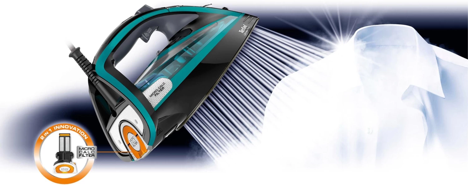| Overige voordelen | De Durillium AirGlide-technologie zorgt voor uitstekende gladheid en een snelle en moeiteloze strijkervaring. Dankzij de door Tefal ontwikkelde Autoclean-coating blijft je strijkzool blijvend vlekvrij en in gave toestand., Intelligente automatische uitschakeling voor extra veiligheid: het strijkijzer blijft rechtstandig staan en schakelt zich na 8 minuten uit. Blijft het op de strijkzool staan, geschiedt de uitschakeling na slechts 30 seconden., Met de automatische stoominstelling hoef je je niet meer druk te maken om de keuze van de juiste hoeveelheid stoom. Je kiest gewoon de juiste temperatuur voor de textielsoort die je wilt strijken. Het strijkijzer doet de rest., Dankzij het grote waterreservoir met een inhoud van 350 ml is ook lang strijken probleemloos mogelijk., Micro-Calc-filter, kalkreinigingsignaal, automatische uitschakeling, automatische stoominstelling., De variabele stoomopbrengst van max. 60 g/min. zorgt voor hoge efficiency en een bijzonder sterke stoomstoot van 250 g/min. Verwijdert zelfs de hardnekkigste plooien. |