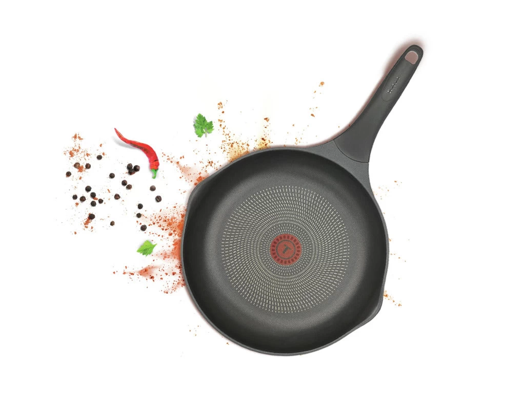 De Tefal koekenpan is uiteraard ook voorzien van de bekende rode Thermo-Spot. De rode warmte-indicator in het midden van de pan vertelt je duidelijk wanneer de pan de ideale baktemperatuur heeft bereikt. De cirkel in de rode stip kleurt op dat moment namelijk effen rood zodat je precies weet wanneer je kunt beginnen met bakken. Hierdoor gaan belangrijke vitamines niet verloren en behoudt het gerecht zijn optimale smaak en textuur. Voor elke dag heerlijk en gezond koken!