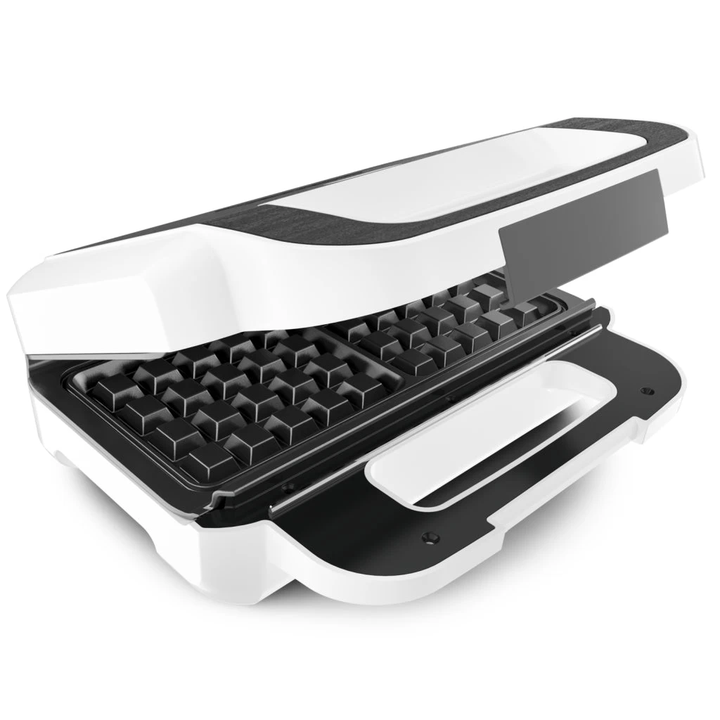 Tefal Snack XL: Royaal belegde sandwiches, tosti’s, snacks en wafels Geniet van een heerlijke sandwich, precies zoals jij dat wilt, met de Tefal Snack XL Sandwichmaker. De extra grote platen zijn breder en dieper dan klassieke sandwiches platen, zodat je rijkelijk belegde sandwiches kunt maken met al je favoriete ingrediënten. Van een clubsandwiches met meerdere lagen tot een riant belegde bagels, met de Snack XL bereid je op perfecte wijze alle soorten en maten brood. Dankzij de twee wafelplaten, die bij de sandwich maker worden geleverd, verandert de sandwich maker in een wafelijzer – zodat je gevulde wafels kunt maken met smakelijke toppings. De krachtige sandwich maker & wafelijzer is voorzien van vaatwasmachinebestendige platen, voor snel en gemakkelijk schoonmaken en je kunt de Snack XL eenvoudig verticaal opbergen, zodat je ruimte bespaart.