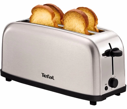 In de Tefal TL330D Broodrooster rooster je tot 4 sneetjes brood, dankzij de extra lange sleuven. Dankzij het hoge vermogen van 1400 watt heb je binnen mum van tijd geroosterd brood. Je stelt zelf de bruiningsgraad in via de draaiknop aan de zijkant. Handig, zo rooster je toast naar eigen wens. Zijn je sneetjes krokant genoeg? Dan druk je op de stop knop. De uitneembare kruimellade vangt alle broodkruimels op. Zo maak je ‘m na gebruik gemakkelijk schoon. Het broodrooster is compact van formaat. Zo past hij op ieder plekje op je aanrecht.